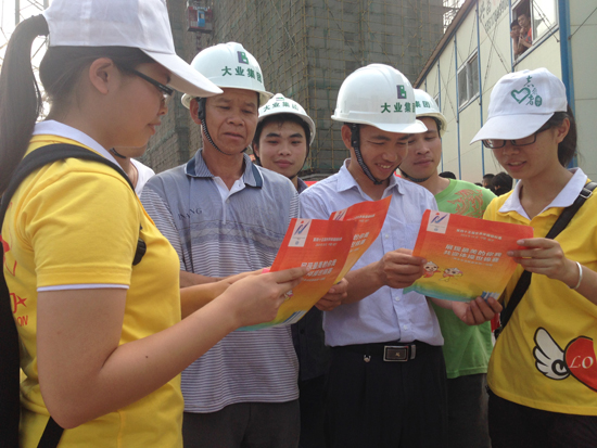 在活动中,务工青年代表宣读了倡议书,号召广大在邕的广大务工青年积极投身世锦赛志愿服务,发扬“能帮就帮”的精神,以热情周到的服务迎接世锦赛,倡议大家遵守城市管理有关规定,向陋习宣战,从身边做起,从小事做起,从现在做起,以整洁、畅通、有序的市容市貌迎接世锦赛!参加活动的领导为务工青年代表赠送了世锦赛宣传手册等宣传资料,还组织了文艺演出,宣传世锦赛文明礼仪,给务工青年送上了文化大餐。