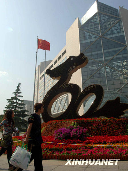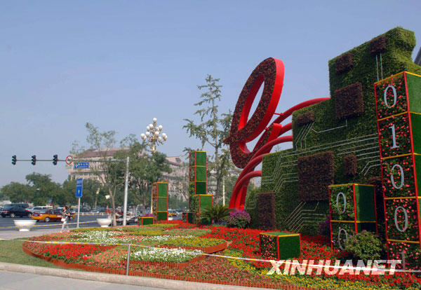 长安街西单路口的大型立体花坛(9月14日摄)。新华社记者 公磊 摄