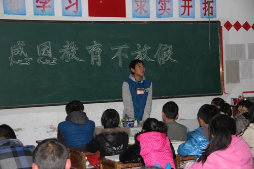 长期以来,农村留守儿童家庭教育问题令人堪忧,部分留守儿童存在心理不健康、交际困难等现象。团婺源县委创新思想引领方式,号召各学校团委利用周末时间,发起“周末感恩”实践活动。即要求学生每个周末回家,做一件感恩的事情。内容为“感恩亲人、感恩社会、感恩大自然”,让学生在实践中感受到亲情的珍贵、社会的美好、大自然之美。