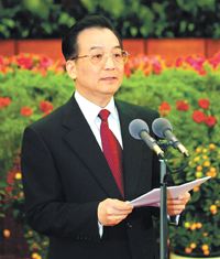 同志们、朋友们: 春回大地,万象更新。在全国各族人民辞旧迎新之际,我们在这里欢聚一堂,共度新春佳节。首先,我向大家表示节日的良好祝愿! 过去的一年,是我国发展进程中重要而非同寻常的一年。我们同突如其来的非典疫情进行了艰苦卓绝的斗争,取得了阶段性重大胜利;我国经济保持良好的发展势头,人均国内生产总值突破1000美元,跨上了新的台阶;“神舟”五号载人航天飞行圆满成功,中华民族飞天梦想成为现实;民族团结,社会进步,人民生活进一步改善。我国各方面取得的成就举世瞩目,全国人民为此付出了巨大辛劳,显示出不畏艰险、创造奇迹的勇气和力量。 展望新的一年,我们充满信心和希望。综观国内国际形势,我们国家正处在一个必须紧紧抓住并且可以大有作为的重要战略机遇期。我们要坚持以邓小平理论和“三个代表”重要思想为指导,全面贯彻党的十六大和十六届三中全会精神,认真落实中央关于今年工作的大政方针和总体部署,继续把改革开放和现代化建设推向前进。 做好今年的工作,我们必须正确把握形势,既要看到有利条件和新的机遇,又要看到不利条件和新的挑战,增强责任感、紧迫感和忧患意识。要坚持科学的发展观,更加注重搞好宏观调控,更加注重统筹兼顾,更加注重以人为本,更加注重改革创新,着力解决经济社会发展中的突出矛盾,着力解决关系人民群众切身利益的突出问题,推动经济持续快速协调健康发展和社会全面进步。 做好今年的工作,各级领导干部要大力弘扬求真务实、艰苦奋斗的作风,加倍努力工作。我们要牢记立党为公、执政为民的宗旨,坚持以人为本,时刻把人民群众的安危冷暖挂在心上。对涉及群众切身利益的就业问题、社会保障问题、看病问题、子女上学问题等,都要给以高度重视,采取积极措施帮助解决。要让最广大人民群众从经济和社会发展中得到更多的实惠。只要我们一切为了人民,一切依靠人民,就一定能够战胜前进道路上的任何艰难险阻,顺利推进全面建设小康社会的宏伟事业。 在举国喜迎新春的时刻,让我们共同祝愿香港、澳门繁荣稳定,祝愿香港、澳门同胞生活更加幸福美好。 “每逢佳节倍思亲”。此时此刻,我们更加思念台湾同胞。我们将坚定不移地与包括台湾同胞在内的全体中华儿女一道,共同推进祖国的完全统一大业。 同志们、朋友们,“春到人间万物鲜”。我们伟大的社会主义祖国到处生机盎然,蒸蒸日上。让我们在以胡锦涛同志为总书记的党中央领导下,万众一心,开拓进取,努力把我们国家建设得更加繁荣富强! 最后,祝同志们、朋友们新春愉快,身体健康!祝全国各族人民阖家欢乐,幸福吉祥!